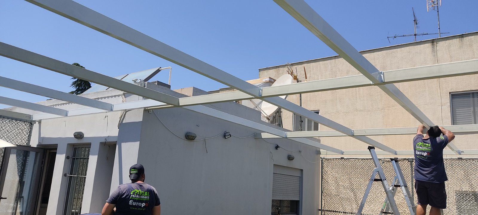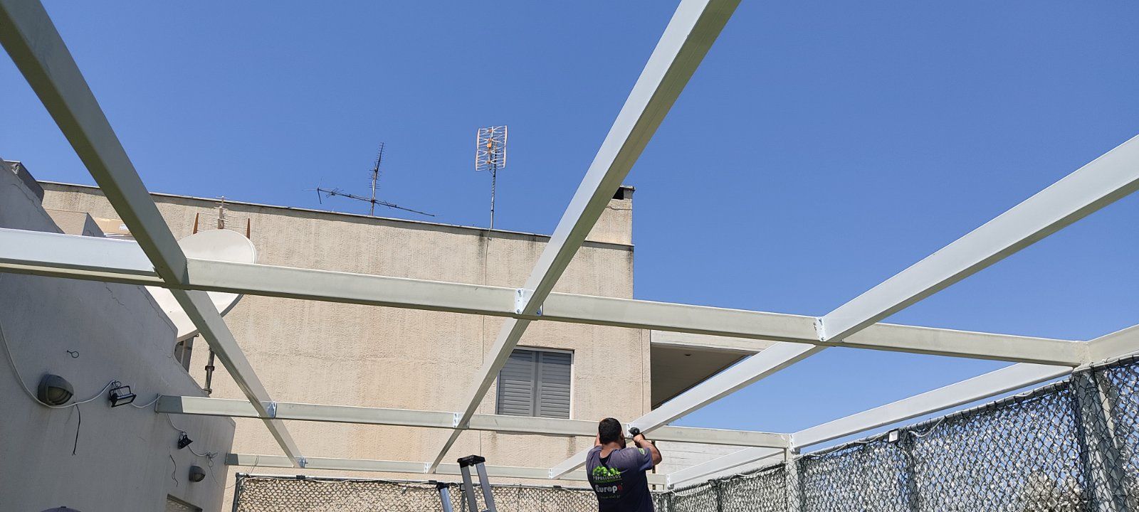 Μεταλλική κατασκευή για στήριξη φωτοβολταϊκών βάσεων, από σίδερα 120 Χ 60 διάμετρο με πάχος 3 χιλιοστά γαλβανισμένα και βαμμένα.